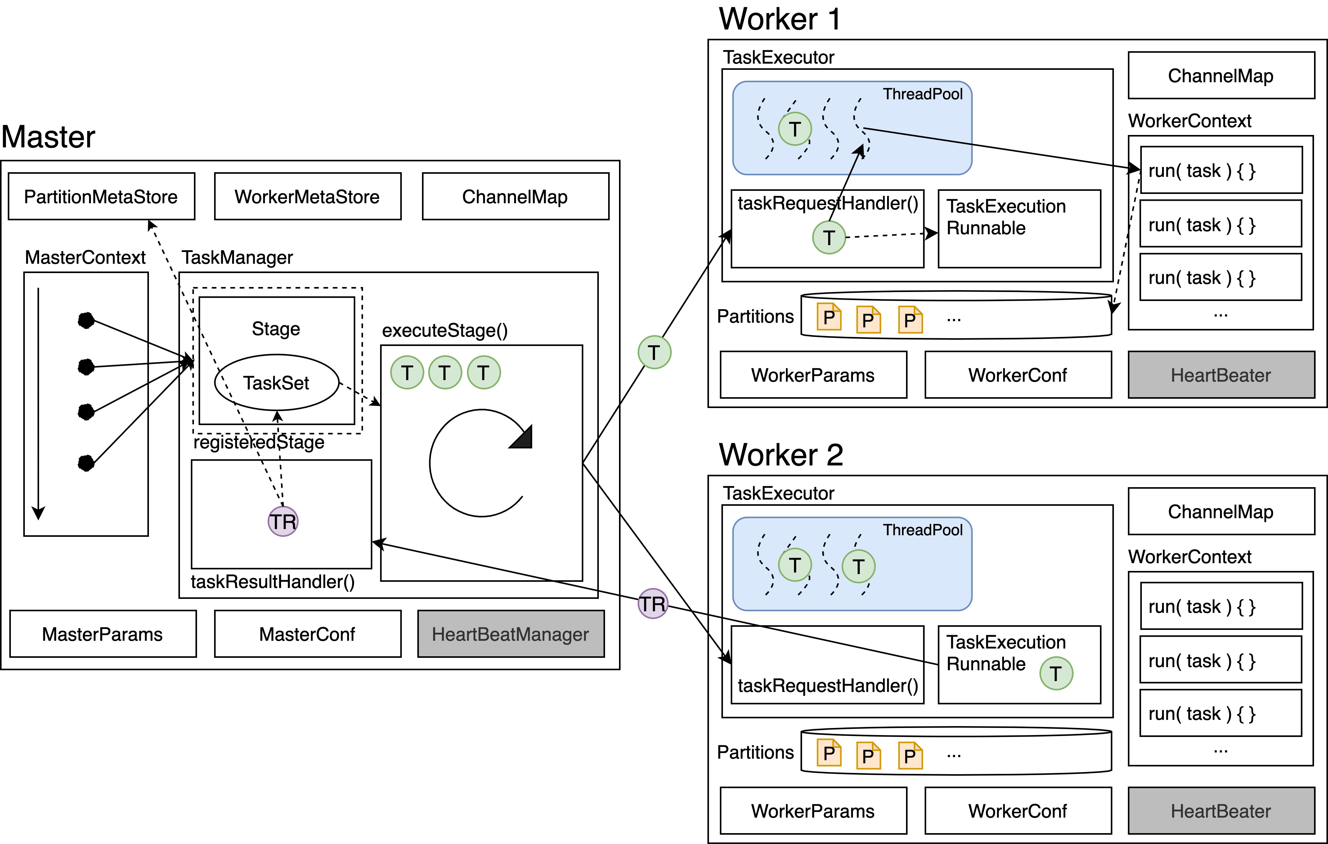 Some of the concepts were borrowed from the design principles of Apache Spark. Still, pretty much of the logics and designs are designed by my own rationale.